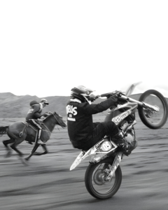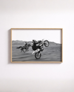 Capture the raw intensity of desert racing with this premium black and white wall art poster featuring a dirt bike and horse in motion. Printed on heavyweight matte paper with crisp detail and a smooth, luxurious finish. Unframed and perfect for living rooms, offices, or gallery walls.