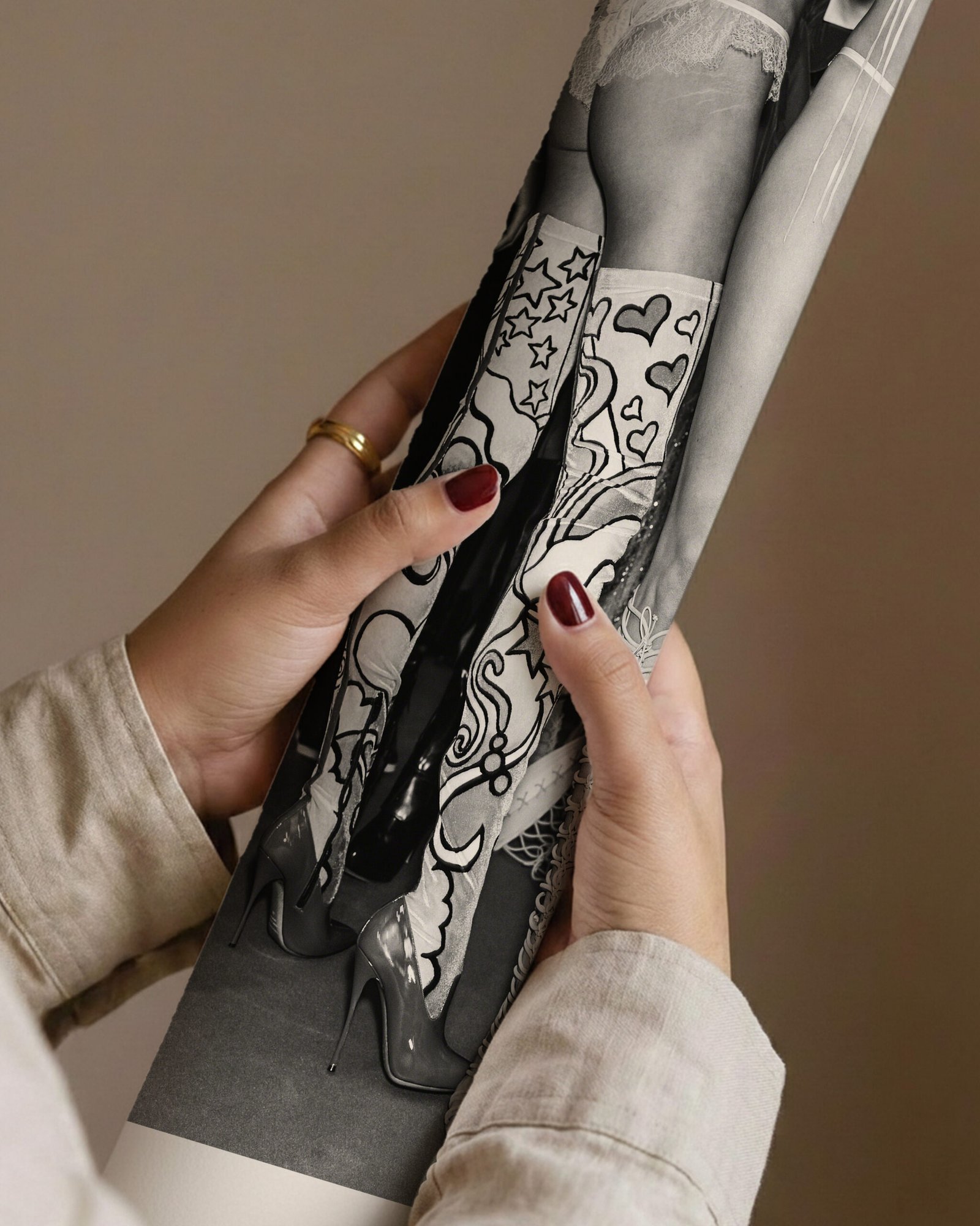 The black and white aesthetic enhances depth, texture, and detail, creating a refined visual statement that feels both contemporary and classic. Inspired by high-fashion editorials and minimalist design, this piece transforms blank walls into curated expressions of style and culture.