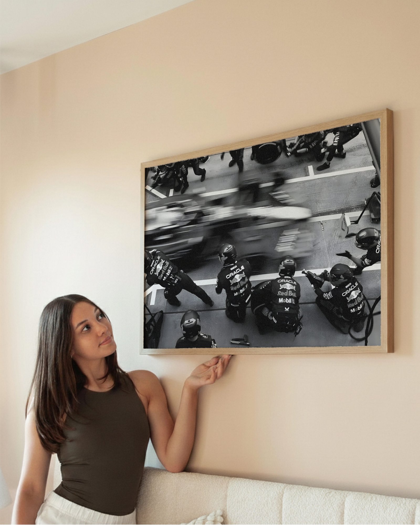 Elevate your space with this Black and White F1 Wall Art | Vintage Pit Crew Photography Poster wall art print, designed to bring heritage, precision, and visual impact into any modern interior. This striking monochrome composition captures the raw focus and teamwork of a vintage Formula 1 pit crew, blending motorsport history with refined minimalist aesthetics.